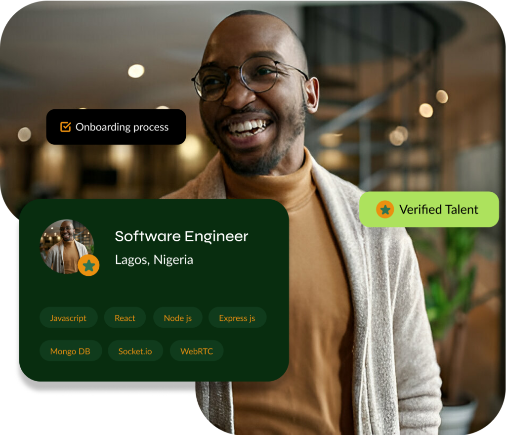Work with pre-vetted talent from Nigeria 🇳🇬, Kenya 🇰🇪, Ghana 🇬🇭, Rwanda 🇷🇼, South Africa 🇿🇦, Egypt 🇪🇬 and beyond — ready to plug into your team.
